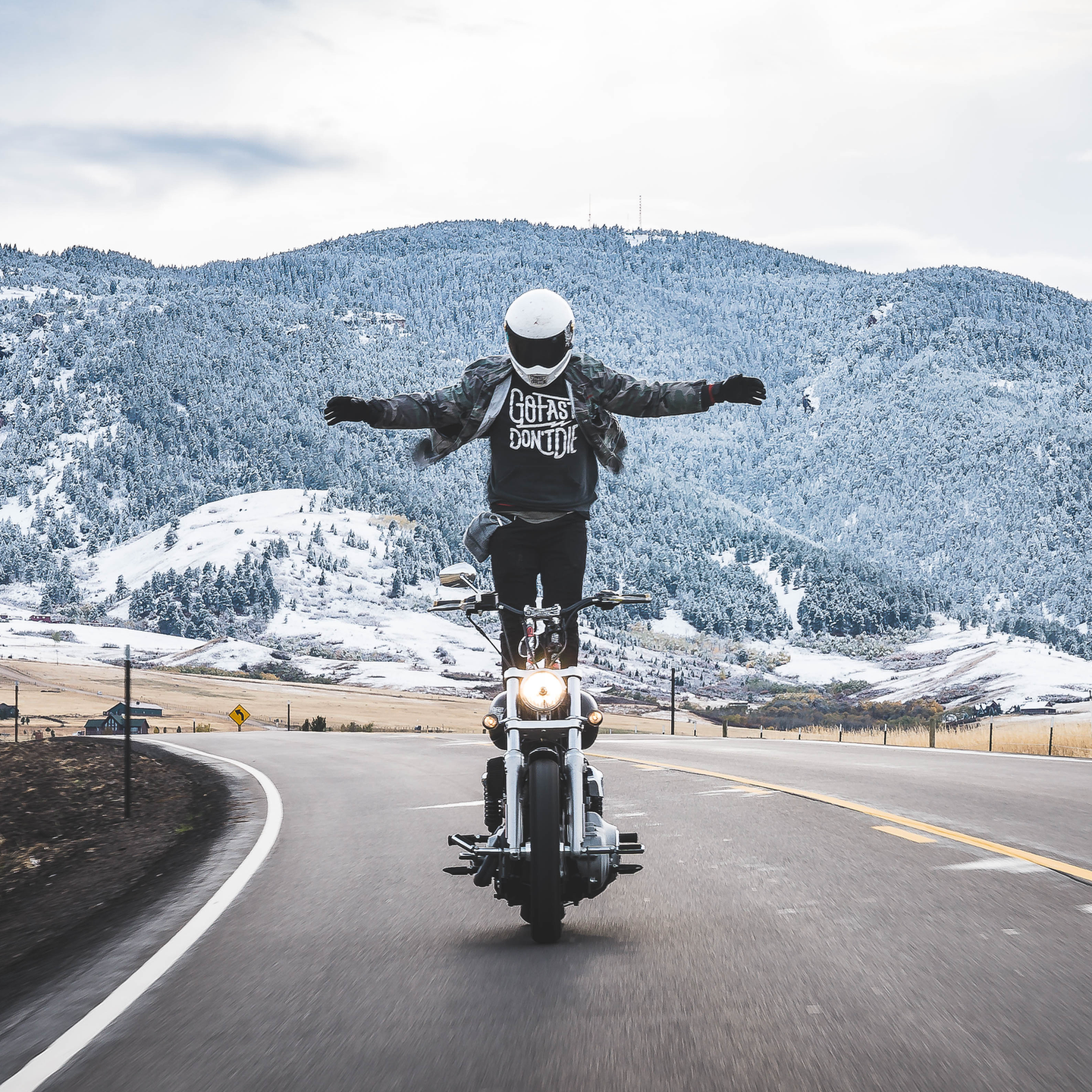 Go Fast Don’t Die is for the crowd that pulls a little more from that throttle after the assessment of risk says to back it off. It’s for those who look at the map and see more than where they are but where they could be tomorrow. Go Fast Don’t Die is for those who see the danger, see the risk, and see nothing in comparison to the potential of the reward. To those who hold dear that pursuit of the thrill, the best times with friends old and new, and the complete lack of a safe alternative.